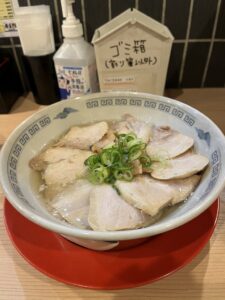 透き通ったスープに麺が見えないほどのチャーシュー。厚みもあり食べごたえがあります。
